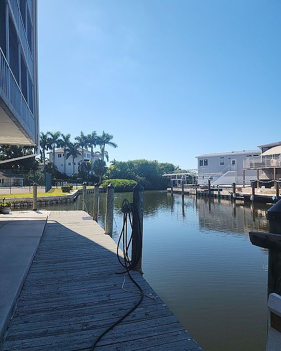 1,040 sq ft, 2 bed, 2 bath waterfront condo. Boat slips are available for rent. Building has a new roof and elevator. Stucco has been repaired and waterproofing removed. There is a contract in place to re-waterproof the concrete areas including the balconies as well as repaint the buildings. There is also a contract to upgrade the pool and hot tub equipment and raise it above the flood area. The condo itself has a new A/C-heat pump and water heater. Unit is sold fully furnished and equipped. Just bring your clothes. There is kayak and bicycle storage as well. Community washers and dryers on each floor of the condos. No brokers/Agents.