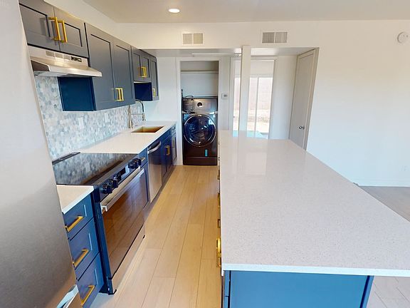 Remodeled Unit: Full size washer & dryer, Built in Microwave, Hood Vent, Navy Shaker Cabinets, White Quartz, Dish Washer, Tile tub surround, Ceiling fans, Paver pad in back yard, New Flooring. Smart Appliancesa