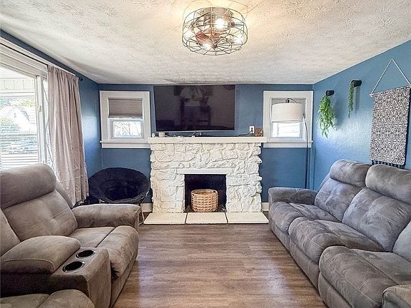 This move-in ready 3 bedroom, 2 bath home mixes modern comforts with timeless charm. The living room showcases a cozy stone fireplace with hardwood floors throughout. The updated kitchen features stainless steel appliances that stay with the home, beautiful backsplash, and open shelving. French doors off the dining room lead to the large primary bedroom that includes a private en suite bath and laundry room blending comfort and convenience in every detail. The welcoming enclosed front porch and large back yard make this home as great outside as it is inside! Don't wait, schedule a tour today!