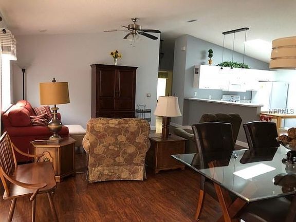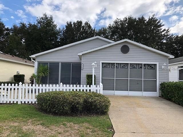 JUST LISTED for 2019 SeasonTwo bedroom two bath patio villa with enclosed lanai. This villa is off of Morse Blvd in De La Vista West so you are in between Lake Sumter Landing and Spanish Springs. Quick ride to either location. King in master with walk in shower with glass doors and flat screen tv. Large walk in closet. Guest room has a queen bed. Hall bath is a tub shower combination with glass doors. Enclosed lanai on the front gives you extra room. Laminate and carpet. Flat screen in the living area. Dining seats 4 and you have an eat in kitchen with updated appliances. Screen on the garage, extra parking just across the road from the villa.Small dog okay. Non smoking. Your village ID's will cost you $50 for two.DON'T LET IT GET AWAY BOOK NOW