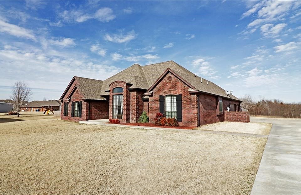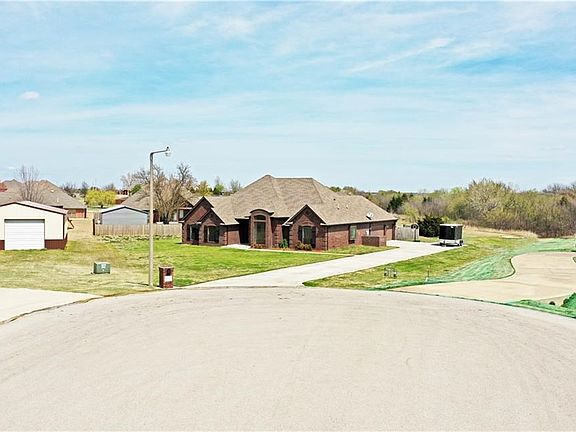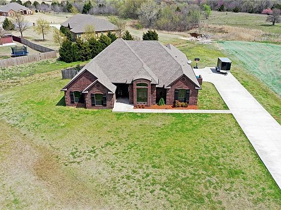 Greatly Reduced! Fantastic custom home with high-end finishes. 2700+ sqft with rich stained wood, high ceilings, black granite counter tops, tons of living space and designer touches. Build your 30 x 50 dream shop right off the drive! This home is simply made for entertaining! The master suite features a vaulted ceiling with large walk-in closets, large granite vanities and a dreamy whirlpool tub. Enjoy the beautiful Oklahoma nights on your covered back patio. Keep your peace of mind with your in-ground storm shelter within the 3-car garage. We have built in a great painting allowance with this price. Don't pass up massive reduction on an amazing home!