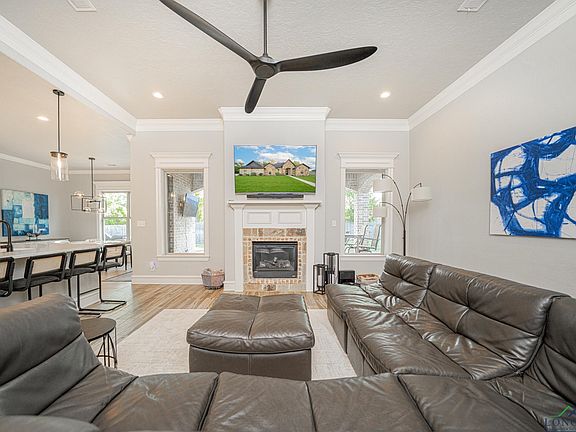 Welcome to your dream home in the prestigious Fairway Oaks Subdivision—an elegant 4-bedroom, 3-bathroom custom-built residence offering over 2,400 square feet of thoughtfully designed living space. From the moment you step inside, you'll be captivated by the seamless open-concept layout, bathed in natural light and anchored by a cozy gas fireplace. The chef’s kitchen is a true showstopper, featuring custom cabinetry, a gas cooktop, stainless steel appliances, a spacious butler’s pantry, and sleek design finishes that blend beauty with function. Whether you're entertaining or enjoying a quiet night in, this kitchen sets the stage. A dedicated office provides the perfect space for working from home or creating a flex room to suit your lifestyle. Each generously sized bedroom is outfitted with brand new carpet, large closets, energy-efficient windows, and 2-inch blinds for both comfort and style. The luxurious primary suite is your private retreat, complete with a spa-inspired bathroom showcasing double granite vanities, an oversized walk-in shower, a relaxing soaker tub, and a jaw-dropping walk-in closet. Step outside into your own backyard paradise—perfect for entertaining or relaxing—set on an corner oversized double lot in a tranquil cul-de-sac. Professionally landscaped with an automated sprinkler system and newly added irrigation, the yard is as functional as it is beautiful. Wrapped in striking brick and stone architecture, this home offers unmatched curb appeal that’s sure to impress. Don’t miss this rare opportunity to own a stunning home in one of the area’s most desirable neighborhoods. Call today to schedule your private showing!