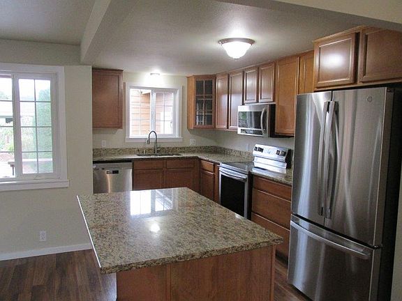 Updated home on hill near Hillcrest Park. Granite counters in kitchen with island & eating area. Appliances included are electric flat top range, microwave, dishwasher and new refrigerator. New interior paint & window coverings. Living room plus family room/sitting area. 3 bedrooms and 2 full bathrooms (1 off primary bedroom). Laundry room with washer & dryer. Deck off kitchen open to fully fenced backyard with mature landscaping. Storage room & 1 car garage off alley. One year lease required. $2800.00 per month with $2800.00 deposit. $300.00 non refundable carpet cleaning fee. NO PETS! Sewer/Garbage/Recycling and yard maintenance included in rent.