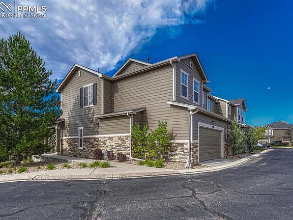 Welcome to this stunning 2-story townhome located in the award-winning Lewis-Palmer School District 38! From the moment you arrive, you'll love the covered front porch, perfect for enjoying those gorgeous Colorado evenings. This home features an inviting, bright and open floor plan designed for both comfort and functionality located on a private corner with plenty of parking near-by. Step inside where you will be greeted by warm LVP flooring throughout the living room, dining room and updated kitchen with stainless steel appliances and plenty of counter space complimented by an abundance of natural light. The powder bath and laundry area complete the main level nicely. Upstairs, you will find that this large primary suite is a true retreat, complete with an en-suite bath, dual vanities, a linen closet, and a large walk-in closet. Down the hall you will find 2 additional bedrooms and a hall bath with dual vanities. Low maintenance exterior with walking trails right outside your door! A fantastic location with green space & trails right out your front door! Easy access to I-25, restaurants and shopping for convenience yet tucked away enough for comfort and tranquility. Other features include A/C for those hot summer days, and an oversized two-car garage with shelving included to maximize storage space and ample storage in the lighted crawl space. These end units are a rare find in this community, so schedule your showing today... This beauty won't last long!