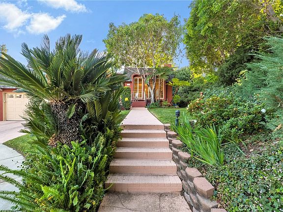 Don’t miss out on this rare opportunity to own this cul-de-sac, pool home nestled in one of the most desirable neighborhoods in Granada Hills. A well-manicured front yard and charming porch lead you to the double door entry where you are greeted with a spacious foyer. To the right is a grand living room with a cozy fireplace, 10-foot ceilings and oversized windows which invite plenty of natural light inside. This large living room provides plenty of space for a formal dining area. Next is the kitchen which offers a double oven, double sink, breakfast nook, custom tile counters, an additional dining area, a sliding glass door and large windows overlooking the backyard. Upstairs, you will find the primary suite that includes a walk-in closet, its own bathroom with shower and double sink vanity plus a quaint balcony overlooking the neighborhood where you can enjoy your morning coffee. There are two additional bedrooms upstairs and a full bathroom. Conveniently located on the main floor downstairs is another bedroom, bathroom with shower, a generously sized family room with a wet bar. Open the sliding glass door and step out to your private entertainer’s backyard with a sparkling pool, partially covered patio area and delicious fruit trees (apple, lemon, pomegranate).