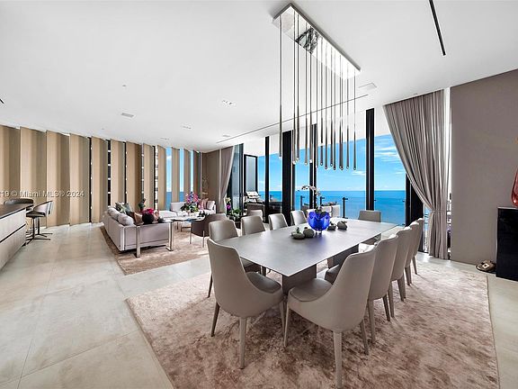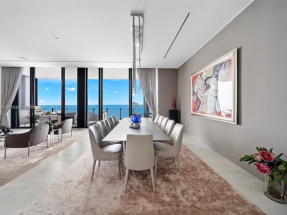 This expansive full-floor residence features 4 bedrooms, 5.1 baths, and an office, spanning an impressive 6,000 square feet. Offering sweeping views of the ocean, Intracoastal, and city skyline, this home epitomizes luxury living in Sunny Isles Beach. Every detail has been thoughtfully curated, from the state-of-the-art Wolf appliances to the two MiaCucina kitchens. The interiors are beautifully furnished with high-end pieces from Roche Bobois, Poliform, and Maxalto. Muse Residences provides an array of premium amenities, including direct beach access, a restaurant bar, a fitness center, resort-style pool, spa, concierge services, valet parking, and 24/7 security. This boutique building offers residents an unparalleled lifestyle of comfort, convenience, and sophistication.