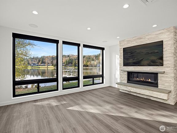 Discover the ultimate modern lakefront retreat—brand new, brilliantly designed, and on one of the most coveted south-facing parcels on Big Lake. Enjoy over 40' of no-bank waterfront, complete with a newer dock and boat lift, giving easy access to the water whenever the moment strikes. Thoughtfully compact in square footage, this home lives large with expansive indoor-outdoor living spaces. Covered and open-air spaces—some heated to enjoy the living environment and lakeside living. Inside, every detail has been dialed in with top-tier, cutting-edge finishes, from Lutron shades to Thermador appliances, premium surround sound, and state-of-the-art gaming and tech wiring. This home represents modern luxury at its finest.