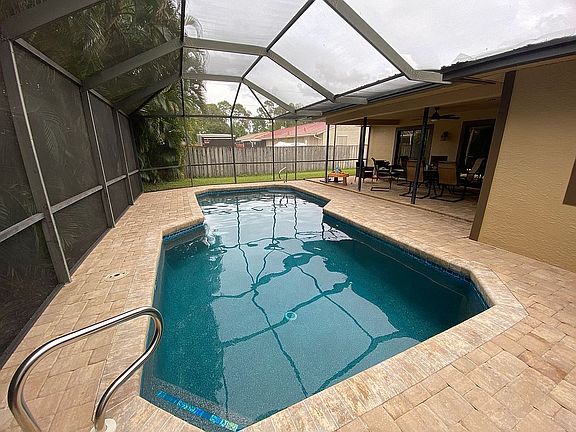 Centrally located home on a quiet side street in San Carlos Park. Just minutes to I-75, Gulf Coast Town Center, Coconut Point, Miromar Outlet, FGCU, RSW, San Carlos Park Elementary as well as Three Oaks Community Park and Schools. Take a drive to the Beach in less than 30 minutes! Ideal 3/2 layout with large living room area offering flexible floor plan. Large covered patio area with private pool. Upgrades include: home renovated in 2020 including bathrooms, new core tech XL luxury flooring, new paver style back patio, pool resurfaced/retiled, safety baby gate around pool, and kitchen with new cabinets, extended bar and quartz countertops. Newer AC installed in 2018. New water heater installed 2021. Contact for more information!