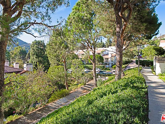 Nestled in the beautiful canyons of the Palisades Highlands. Tranquil living abounds in this meticulously maintained 3 bedroom, 3 bath townhouse. The living room features high ceilings, a wood-burning fireplace, and sliding French doors to front patio with gas grill. One-half level up is the dining room with built-in bar, kitchen with stainless steel appliances, a nice sized bedroom, and 3/4 bathroom. The top-level features the master bedroom with private balcony, two large closets including one generous walk-in, and a master bath. The second upstairs bedroom has a large closet and its own bath. Also included are an attached 2 car private garage and laundry room. Beautifully landscaped grounds feature lush gardens and mountain views. The HOA provides a serene pool and spa, fitness room, and grassy play area. Great location near hiking trails, Palisades Village, Santa Monica, and Malibu.