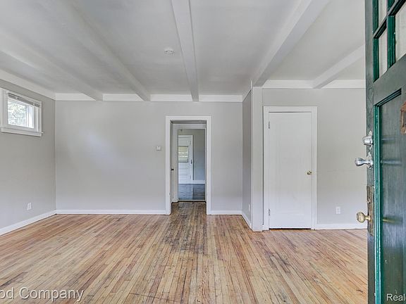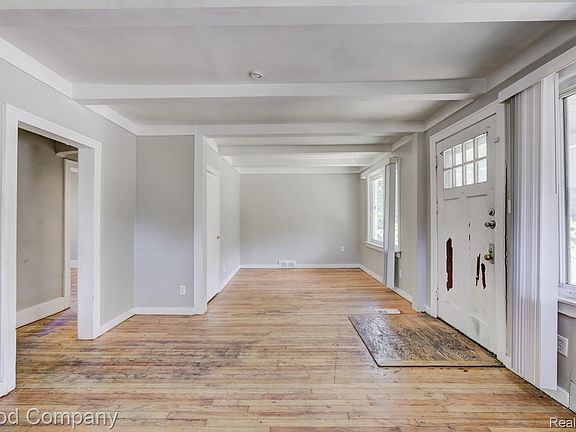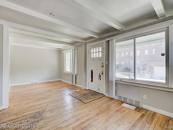 Calling all investors! Promising Detroit bungalow on a double lot offers great potential with a flexible layout and plenty of outdoor space. Step onto the covered front porch and into a bright, open living and dining area featuring charming ceiling beams and hardwood floors. The generous eat-in kitchen offers plenty of workspace, and direct access to the backyard, plus a convenient stairway to the upper level. The main floor hosts one bedroom and a full bath, while upstairs you'll find two additional bedrooms with cozy carpet and built-in shelving. A full basement adds extra storage space and room to grow. The backyard is shaded with mature trees and includes a detached garage on a double lot. Welcome Home!