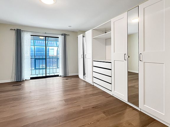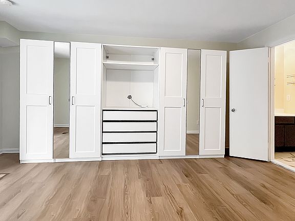Large primary bedroom with a wealth of storage space. A second bedroom with a built-in Murphy bed, great for a flex space of bedroom and office space. An in-unit front-load washer and dryer adds everyday convenience.