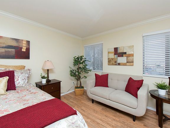 This chic contemporary condo is move in ready. This light and bright condo host many upgrades and includes all appliances all you have to do is move in and hang up your wardrobe. Laminate flooring and crown molding throughout. Bathroom has been recently upgraded with new vanity, lighting and mirror along with new flooring, tile shower enclosure with newly installed shower doors. Kitchen includes all appliances including Refrigerator, Stove, Dishwasher, Microwave, Granite Counters and all cabinets have been refurbished. The extra large master bedroom closet has large mirrored sliding doors and inside the closet has wall to wall custom shelving. Washer & dryer are also included and located inside the unit. New blinds installed on all the windows. Patio balcony is perfect for a BBQ and has a storage closet. Underground parking has 2 car tandem assigned spots including 2 storage cabinets. Low monthly HOA dues.