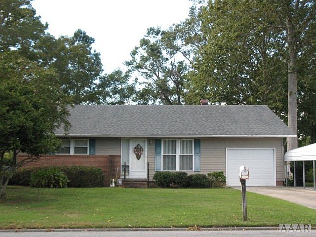Cute ranch style home with 3 bedrooms, 2 baths, and single car attached garage plus a carport. The living room has wood floors and is open to the country kitchen with large eating area. Kitchen has entrance into the garage and also into the back yard. Newer roof with Architectural shingkes, adds to the curb appeal plus the home is conveniently located close to the Coast Guard base, ECSU or downtown EC.