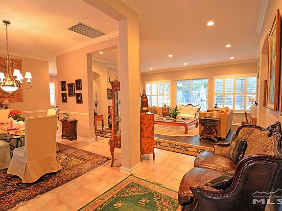 You have been waiting for it....single story, on the greenbelt in gated Caughlin Creek. High end updated kitchen and master bath. Gas fireplace. Wonderful patio with Viking gas bar-b-q overlooking babbling Alum Creek and greenbelt. Walk to Caughlin Club for year around tennis, gym and swimming. Miles of paved walking trails and groomed greenbelt with ponds and creeks. Security system. Tile roof. Stucco exterior. Central A/C. Fully landscaped with auto drip and sprinklers.