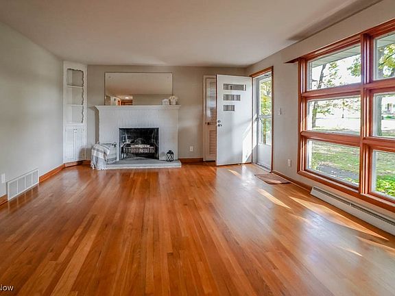 Wonderful opportunity to own an all brick ranch on nearly half an acre in Perry Local Schools! The parklike setting surrounded by mature trees makes a great first impression. Inside, the living room feels inviting with a floor to ceiling window, wood burning fireplace, and gleaming hardwood floors. The kitchen will win you over with an abundance of oak cabinetry, newer stainless appliances, and Corian countertops. French doors open to the sunroom with Andersen windows, a wood burning stove, new carpet, and direct access to the deck overlooking the wooded backyard.