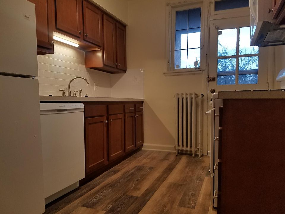 Large 1 bedroom on 2nd floor, new kitchen, hardwood floors being refinished starting 11/25/19. Range, refrigerator, dishwasher,microwave, basement with washer/dryer hookup 1 year lease - water/sewer/trash included in rent
