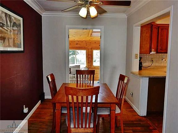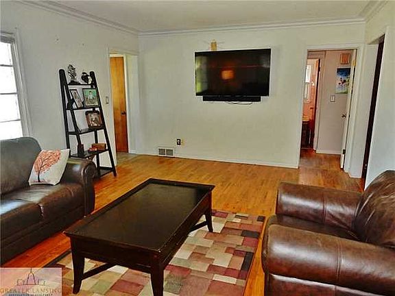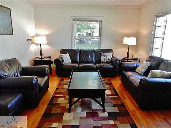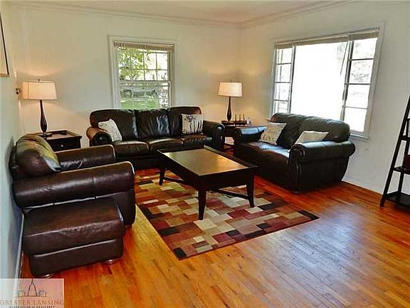 Beautiful classic facade , hardwood flooring throughout most of the main floor, brick exterior & two living areas makes this home the perfect find. Living room has gleaming hardwood flooring, crown molding, nest thermostat and large windows allowing in plenty of natural light. Hardwood continues throughout the home into two minor bedrooms with ceiling fans & large closets. Dining room includes crown molding, hardwood, & looks out into four season room with newer windows and siding, and outdoor access - creating the perfect spot to relax. Kitchen has detailed ceramic tile flooring, updated lighting & newer countertops. Enormous upstairs master bedroom showcases hardwood, built-in storage, half bath, and darling sitting area to curl up in with a book. Backyard may be the largest in Colonial Village! Completed with two patios, large shaded trees, fully fenced in with one car detached garage. Only 7 miles from MSU - Easy access to Old Town, Downtown Lansing, and East Lansing. Area is surrounded by fantastic bike trails that connect all locations. Attention to detail throughout- this home is a must see!