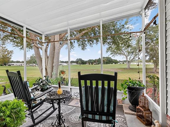 NO BOND! Must see, one of a kind, updated home on Panoramic Golf Course Lot. Enter the property Via the 29 Ft Carport into your first screened Lanai. Follow the Breezeway past the Utility room to the additional rear Lanai where you can enjoy your morning coffee while taking in the VIEW! Enter the Home into a welcoming Foyer that opens to a spacious eat in Country Kitchen. Here you'll find an abundance of cabinet space, plus a custom made walk in Pantry complete with frosted glass door. Notice the Island Cook Top, Wall Oven, Coffee Bar, updated Light Fixtures and Dual Solar Tubes. That's not all, this also opens to an additional Dining Area. Great for Entertaining. Next you have the spacious Living Room highlighted by the floor to ceiling windows with beautiful views of the Fairway and our resident Sand Hill Cranes! The Primary Bedroom features a Spa Inspired En Suite complete with French Doors, Garden Soaking Tub and walk in Shower. The second Bedroom features a Jack & Jill Bathroom that can be entered from the Foyer or the Guest room on the other side. An Ideal set up for those overnight guests. The finishing touch is the 30 X 10 ft. Florida Room under heat and air offering additional living space to utilize as an Office, Den, Crafting or "Man Cave!" Location is Key, just over the Golf Cart Bridge to Spanish Springs Town Square offering nightly Entertainment, Dancing, Restaurants and Shopping. Health Facilities, Hospital and Churches are all accessible by Golf Cart. Come take a look and enjoy all The Villages has to offer! (Note New HVAC system being installed 2/25 )