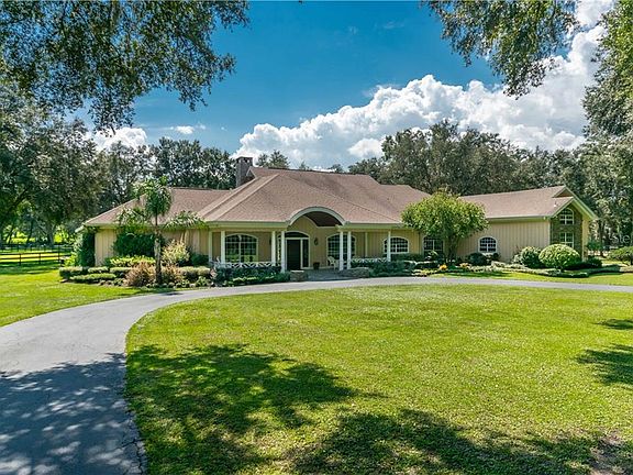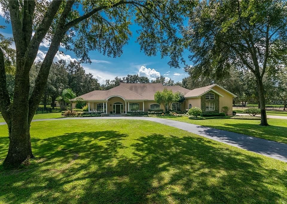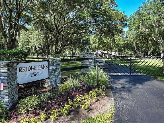 On 15+ acres in the highly sought after Ocala Downs neighborhood, Bridle Oak's gated estate is the pinnacle of equestrian luxury. Opening to a large living area with stone fireplace and formal dining room, this 3-bedroom, 3.5-bath home is sure to be the envy of any get-together! Cook in the gourmet kitchen, complete with gas stove, double oven, and granite countertops. Unwinding is a dream in the master suite, complete with walk-in closets, his and hers bath-suites, and access to the indoor pool. As of 2020, the home also boasts a new roof with warranty! With six paddocks and two barns totaling 8 stalls, plus wash rack and an AC-ed tack room, this property has everything. A professionally-built riding arena, four-car garage with tool room and RV hook-up, and gorgeous riding trails throughout the neighborhood complete this stunning horse farm.