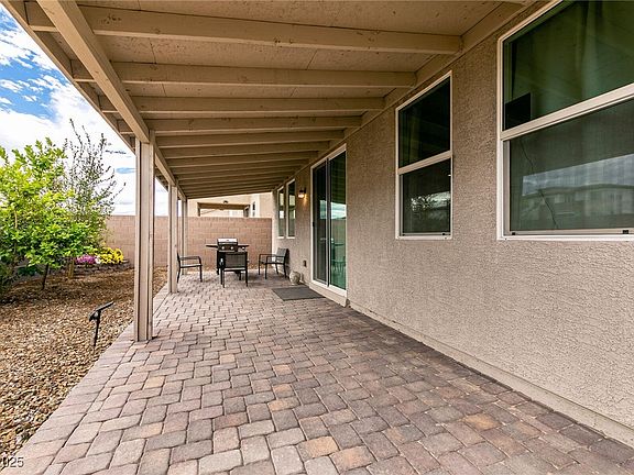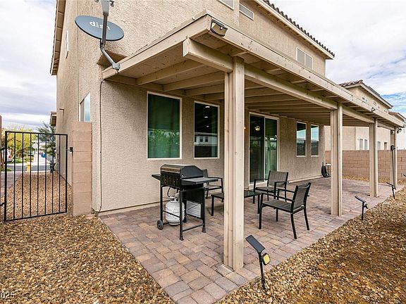 **ABSOLUTELY TURN-KEY & BETTER THAN NEW!** Only four years old, this pristine North Las Vegas gem sits in a stylish gated community known for its clean contemporary architecture. Step inside to a beautifully designed open layout featuring 12x24 luxury vinyl flooring, a sleek entertainment-style multicolored fireplace wall, and a chef-inspired kitchen with a large center island, pendant lighting, upgraded fan hood, inlaid stone backsplash, and the extended wall-to-wall cabinetry option—perfect for cooking, storage, and extra workspace. Upstairs, the primary suite offers a true retreat with generous closet space, an oversized walk-in shower, and dual sinks at the vanity for modern comfort. Outdoor living is low maintenance with a covered patio, mature trees, and plenty of space. Energy savings shine here—solar keeps power bills incredibly low, and offers credits back to the grid. Lightly lived in, tastefully upgraded, in a desirable gated community complete with a neighborhood park!