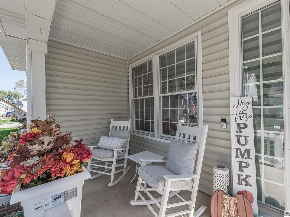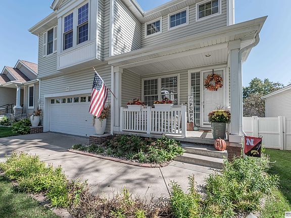 Impeccably maintained Merrifield Village villa with charming curb appeal and an inviting front porch. This home lives like a designer showcase! Step into soaring ceilings, fresh paint, and luxury vinyl floors with sleek window treatments. The kitchen dazzles with white cabinets, glass tile backsplash, granite counters, and stainless appliances, opening to a cozy family room with fireplace. Formal dining flows to a brand-new composite deck and landscaped yard. Upstairs offers 3 bedrooms plus an office with closet, an updated primary suite with accent wall, quartz double vanity, tile shower, and walk-in closet with custom system, plus convenient 2nd floor laundry. Gorgeous walkout lower level features a new ¾ bath. Maintenance-free living with lawn/snow care, new furnace & AC, water softener/filtration, sprinkler system, and low HOA. Prime location near Lakeside Park, trails, lake, shopping, dining, and top-rated Elkhorn schools.