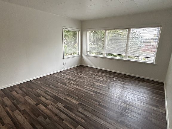 2 bedroom 1 bath home in the heart of Tacoma. New interior paint throughout. New carpeting. Large detached garage with work benches and mechanic's pit. Fully fenced yard. Energy efficient convection wall heaters. Vinyl plank flooring. Stackable washer and dryer included. Conveniently located near shopping, the freeway, and restaurants.