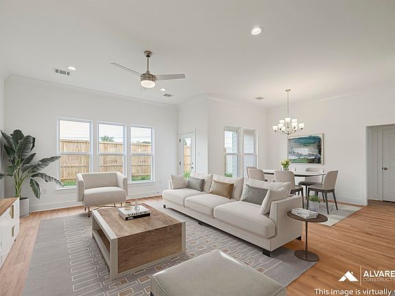 ESTIMATED COMPLETION: 10/12/2025 Welcome to our newest community by Alvarez Construction, nestled in the heart of Baton Rouge just off Staring Lane. Our carefully crafted homes boast modern farmhouse exteriors, blending timeless charm with contemporary design. Ranging from 1,718 to 2,428 square feet, our 1 and 2-story residences offer spacious layouts to suit every lifestyle. With a total of 75 homesites upon completion, our community offers a sense of exclusivity and tranquility. Picture-perfect ponds dot the landscape, providing serene views and a peaceful ambiance for residents to enjoy. Step inside to discover interiors designed for modern living. Vinyl-plank flooring graces the main living areas, while bathrooms and utility rooms feature elegant tile accents. Crown molding accents adorn the living spaces and Owner’s suite, adding a touch of sophistication. Our kitchens are a chef’s dream, boasting oversized islands, custom cabinetry, gas cooktops, and luxurious 3 cm granite countertops. The Camden is a single-story, 1,718 sq ft, 3 bedroom 2 bathroom plan that features an open living area with 10’ ceilings. The kitchen features a large chef's island, a gas stove top and a walk-in pantry. The large owner’s suite has windows to the backyard, an ensuite attached bath with double vanities, a walk-in shower, a separate garden tub, WC, and a spacious walk-in closet. Bedrooms 2 and 3 are located at the front of the home and share bathroom 2. There is a utility room located right by the 2-car garage. Upgrade Carpet to Vinyl LV2: (Primary BR+Closet/BR2/BR3) LV3 Tiled Shower LV2 Gourmet Kitchen w/ Vent Hood LV2 Granite Countertop Trash Can Pull Out Single Basin Sink LV2 Cabinet Hardware (Satin Nickel, Rounded) Cabinets to the Ceiling LV2 Tiled Shower in Primary BR Upgrade Mirrors: 27530 Sweater Box