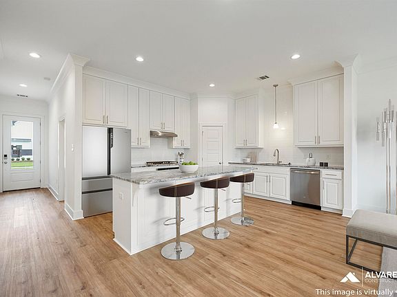 Welcome to our newest community by Alvarez Construction, nestled in the heart of Baton Rouge just off Staring Lane. Our carefully crafted homes boast modern farmhouse exteriors, blending timeless charm with contemporary design. Ranging from 1,718 to 2,428 square feet, our 1 and 2-story residences offer spacious layouts to suit every lifestyle. With a total of 75 homesites upon completion, our community offers a sense of exclusivity and tranquility. Picture-perfect ponds dot the landscape, providing serene views and a peaceful ambiance for residents to enjoy. Step inside to discover interiors designed for modern living. Vinyl-plank flooring graces the main living areas, while bathrooms and utility rooms feature elegant tile accents. Crown molding accents adorn the living spaces and Owner’s suite, adding a touch of sophistication. Our kitchens are a chef’s dream, boasting oversized islands, custom cabinetry, gas cooktops, and luxurious 3 cm granite countertops. The Camden is a single-story, 1,718 sq ft, 3 bedroom 2 bathroom plan that features an open living area with 10’ ceilings. The kitchen features a large chef's island, a gas stove top and a walk-in pantry. The large owner’s suite has windows to the backyard, an ensuite attached bath with double vanities, a walk-in shower, a separate garden tub, WC, and a spacious walk-in closet. Bedrooms 2 and 3 are located at the front of the home and share bathroom 2. There is a utility room located right by the 2-car garage. Upgrade Carpet to Vinyl LV2: (Primary BR+Closet/BR2/BR3) LV3 Tiled Shower LV2 Gourmet Kitchen w/ Vent Hood LV2 Granite Countertop Trash Can Pull Out Single Basin Sink LV2 Cabinet Hardware (Satin Nickel, Rounded) Cabinets to the Ceiling LV2 Tiled Shower in Primary BR Upgrade Mirrors: 27530 Sweater Box