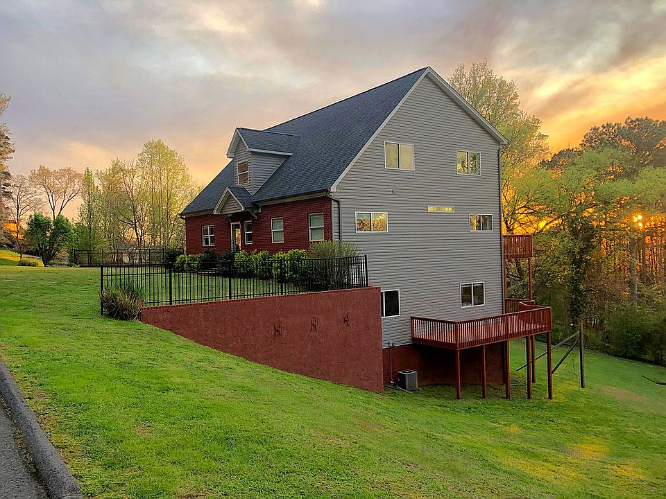 *Realtors welcome at 3% commission*. (423) 710-9224 Close to everything yet private! Wooded, quiet cul-de-sac street. Very few neighbors. No HOA. Amazing view of the city, spacious open floor plan, and a kids zip line! Seller downsizing, so this is a rare opportunity. HUGE rec room upstairs, movie projector, surround sound, reclining sofas for family movie nights. How awesome is it to have your own movie theater just a few steps away?! 4 br, 3 ba, office, laundry, 2 car garage, LOTS of storage. Granite. 9 foot ceilings. Big wrap around deck for entertaining. Finishing basement will add another 850 to existing 3,400 sqft of living space (4,250 total). 1 acre lot surrounded by trees at back and on one side of property. Perfect for kids, with a flat front yard and slightly sloped back yard. Please see our Craigslist ad to set up a showing today! *Realtors please do not contact us to list, only if you have a buyer, thanks! We are happy to e-sign any "Agreement to Show Property" documents at 3% commission, and let you show the house*