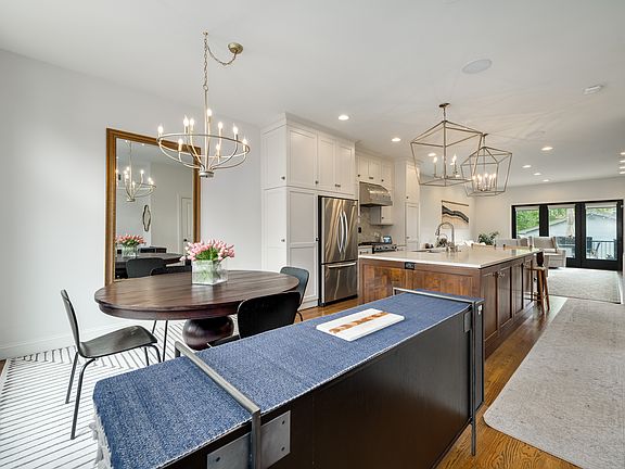 The home underwent a complete interior redesign in 2020, highlighted by a Christopher Peacock-inspired kitchen that is both a functional workspace and a stunning centerpiece. It boasts a massive island, premium stainless steel appliances, and a breakfast bar for casual dining.