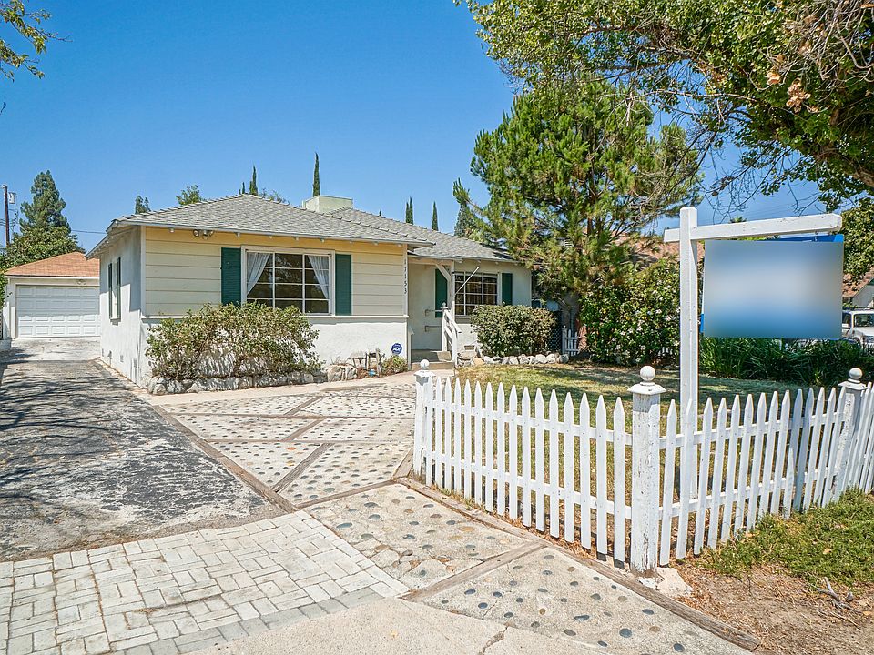 Warm and inviting charming traditional home in a highly coveted area of Granada Hills. This sun filled 3 bedroom, 1 bath home has a flexible floor plan where 3rd bedroom can be used as den or home office. Large windows and multiple glass doors allow lots of light everywhere. Vintage gleaming hardwood floors flow into large living and dining rooms with crown moulding. Gorgeous redone bath with tile floor and stone counter top. Bright country style kitchen has restored O'Keefe & Merritt Stove and separate laundry area. Family room off kitchen offers romantic fireplace and exposed beams for voluminous feel. Enjoy massive rear yard with berries, artichokes, multiple orange trees, and beautiful rose garden. In addition, extra large lot offers expansion possibilities. Some owner improvements are roof, plumbing, and insulation. Long driveway for multiple vehicle parking leads to detached 2 car garage. Located in highly desirable Granada Hills and Valley Academy of Arts & Sciences schools.