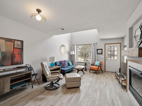 This charming end-unit townhome in Maple Grove is ready for you! It features 2 bedrooms, 2 bathrooms, and a 2-car garage with a bright, open layout. The main level has new flooring throughout and a cozy living room with a gas fireplace, creating a warm and inviting space. The kitchen includes white raised cabinets and an eat-in dining area. A sliding glass door opens to a private patio that overlooks trees and nature—great for relaxing or entertaining. Upstairs you find new carpet throughout, a laundry room for added convenience, 2 bedrooms, and a loft that provides extra space for a home office, reading nook, lounge, or workout area. The primary suite is very spacious and features a vaulted ceiling, a large walk-in closet, and a walk-through full bath. Located close to parks, trails, restaurants, and shopping, this townhome offers comfort and convenience in a prime Maple Grove location!