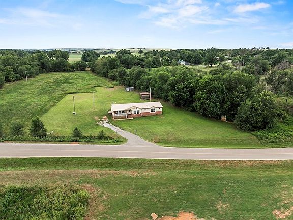 Welcome to your serene oasis nestled on almost 10 acres. This picturesque setting boasts lush green grass surrounding a beautifully maintained home. Inside the heart of the home is a spacious kitchen with a large island, perfect for those who love to cook and entertaining. With an open floor plan, and a wood burning fireplace, the interior is tastefully designed to complement the natural beauty outside. The flat, wide-open acreage offers many uses, and would be perfect for a homestead, for crops, equine, or gardening. Conveniently located only 12 miles from I-40, and only 40 minutes from Oklahoma City, this property fulfills rural living, yet a pleasant easy commute to urban areas.