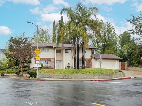 Welcome to the captivating 17157 Nanette Street, where curb appeal takes center stage! Elevated for enhanced privacy, this residence boasts a charming front lawn, swaying palm trees, an extended driveway, and a striking exterior adorned with brick and wood-siding details. The double-door entry opens into a foyer with vaulted ceilings and stylish tile flooring. Upon entering, discover the inviting living room to the left, featuring a majestic fireplace, appealing flooring, recessed lighting, and sliding doors that seamlessly connect to the backyard. Adjacent is a versatile bonus room, perfect for formal dining or a multifunctional space. The remodeled kitchen impresses with ample cabinet space, a sizable sink, and a convenient pass-through window to the dining/family room, illuminated by a ceiling fan/light and a bright window overlooking the front yard. The bedrooms are generously sized, offering large closets and additional storage. The primary bathroom showcases a spacious double-sink vanity, adding a touch of luxury. Situated on an expansive 11,150 square foot lot, the backyard unfolds with a substantial lawn, flourishing trees, and a variety of fruit trees along the perimeter, creating a delightful mix of shade and greenery. Parking is a breeze with a 3-car driveway and a 2-car garage equipped with a brand new opener. This residence is ideally located in a pleasant area near parks, hiking trails, Knollwood Country Club, and the Knollwood Center shopping center. Experience the perfect blend of style and convenience at 17157 Nanette Street!