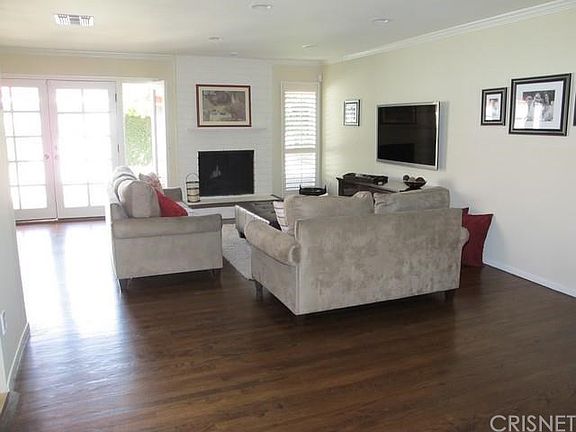 Absolutely model perfect home in desirable Encino Village! Great curb appeal! Living Room & Dining Area open to beautifully remodeled kitchen for totally open living area. Beautiful hardwood floors, French doors to spacious yard, recessed lighting, crown mouldings & newly painted neutral designer paint colors. Kitchen features sleek dark cabinets accented with granite counter tops & stainless appliances. Newer dual pane windows throughout. Upgraded bathrooms. Extra wall of closets added in Master Bedroom. Large grassy yard highlighted by new pebble surface patio. Roof and furnace only 5 years old & near new air conditioning & water heater. High end security system with security cameras. Just a few blocks to Park for playground, tennis, soccer, & bike paths. Only minutes to the 405 & 101 Freeways. Highly rated Encino Elementary School.