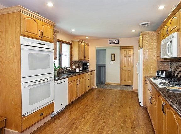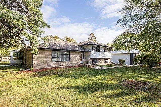42 ft x114ft Pole barn with front door is 16' wide and 15' tall and 8 x 8 ft back door. Owner has rented space in the pole barn before that would probably pay a buyers mortgage. 3 nice size hardwood floors bedrooms 1.1 bath home sitting on 9 acres, can be divided. Huge sun room for relaxing so you can enjoying the huge yard with all the wild life that crosses it. Basement is particially finished. Updated kitchen with built in appliances. 33' round pool way in back yard for summer enjoyment. Concrete bridge in back yard going over creek.