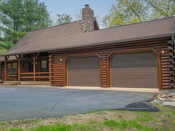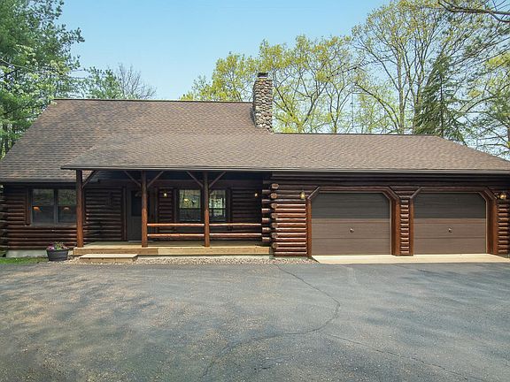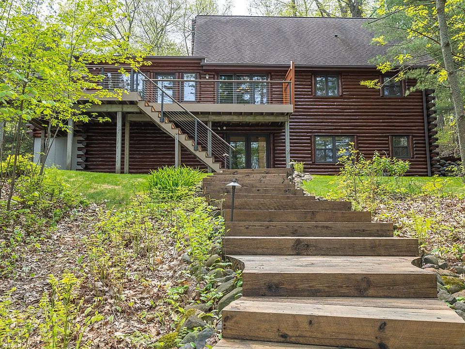 Pride of ownership is evident throughout every inch of this quintessential lakefront log cabin. This meticulously maintained home features an eat-in kitchen, 2 fireplaces (wood & electric), ash flooring, an indoor sauna, a walk-out lower level, 100' of pristine shoreline and so much more! The open kitchen offers ample cupboard & granite counter spaces, a handy pantry & center island. The informal dining room adjoins both the kitchen & living room making entertaining family & friends a breeze. The upstairs loft area is perfectly sized for a cherished home office, library or guest/play room. The finished lower level holds a large family room, a convenient 3/4 bath & an electric sauna creating the ideal space to play or watch TV. Relax & soak up the sun & lake views in the comfy sunroom or on the adjoining 34x11 composite deck. The private backyard oasis is ideal for grilling dinner or relaxing around the lakeside fire pit with your new neighbors. All situated on 2+ acres of paradise!