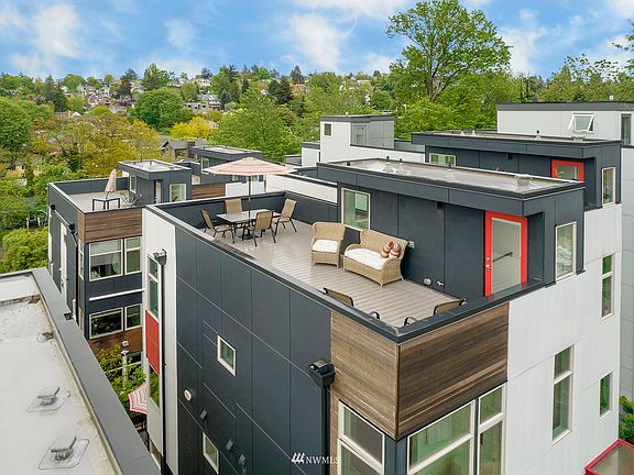 Welcome to this modern 4-Star Built Green home located on a quite street in Madison Valley. The amazing floor plan w/3 bedrms on the upper floors & level entry to the living rm, kitchen & dining rm - no more lugging groceries up stairs! All rooms are generous in size including the top floor primary suite w/custom closet & lrg, private bathrm. Enjoy dining al fresco on the patio, located just off the kitchen or lounging on the roof top deck w/privacy & territorial views. This thoughtfully designed home includes efficient triple paned windows, gas in-floor radiant heating, gas cooking and hot water on demand! Custom built in storage, bike storage locker + off-street parking! Easy access to Madison Valley shops/restaurants & bus lines nearby.