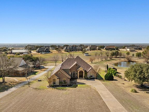 You won't find another custom home this large, on a 1 acre lot that comes with its own BOAT SLIP at this price! The home is nicely situated on a partially fenced 1 acre lot and comes with a boat slip at the private Bentwater marina. Custom built by local builder Will Steed, this 4 bed, 3 full bath plus upstairs bonus room home in the coveted community of Bentwater is located on the Ft Worth side of Granbury. It already has a FULL 3 car garage and you can build a work shop or pool with the proper POA approvals. Formal dining space for holidays and entertaining is available and presently used as an office. Notice the amazing views of the huge back yard as you enter the living room that boasts high ceilings, tumbled marble floors, crown molding and a floor to ceiling stone LP fireplace with built ins. Kitchen has breakfast bar area, a perfect sized prep island with storage, coffee bar area and large pantry. Master suite is located at the back of the home with views of the yard and maybe a future pool??? Large ensuite bath with double sinks, separate walk in shower and garden tub and walk in closet. Guest suite wing at the front of home has large bedroom with vaulted ceiling and full bath that serves visitors too. On the opposite side of the home you will find a great jack and jill set up with spacious rooms, each their own private vanities and shared commode, shower, tub space. Laundry room walks through from garage and features a sink with room for a full size fridge. Upstairs you will find the enormous bonus room which is only limited by your imagination, but could easily be used as a guest room, office or media-gaming room. Recently re-surveyed, the lot was staked so you can quickly see the property lines and how big this lot really is! Located just 2 min from HEB and Kroger makes shopping so much more fun! Dues are only $1000 a year and includes the boat slip on dock H. Marina is located off Emerald Bend. HOA has a storage for trailers and RVs for an extra fee.