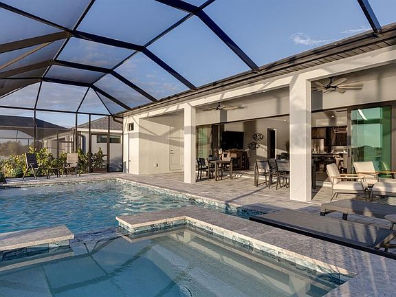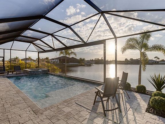 Perfect Cape Coral oasis with everything to feel at home located near golf course with ocean access! 2024-built 3BR/3BA lakefront home, open the zero clearance patio sliders to relax with the Florida weather and breathtaking gulf sunsets. Enjoy a saltwater pool with Wi-Fi app controls, super screen lanai, and upgraded 4-ton HVAC for instant comfort. Smart home features include Ring cameras, smart locks, thermostat, and garage controls, plus alarm system and whole-home RO with well and septic. Hammerhead driveway, 6-zone irrigation, and 50-gal water heater add convenience. Ready for Airbnb with owner’s closet, supplies, and local management. Elegant, efficient, and professionally designed. Perfect for your home, vacations, or investment property