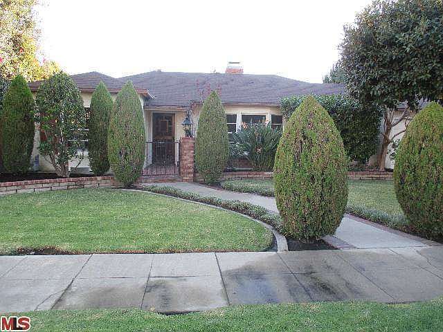 Lovely Traditional home, Living room with bay windows and fireplace, formal dining area, center hall plan with 2 bedrooms and 2 bathrooms. Master bedroom overlooks lush and verdant fruit trees, rose garden and large swimmer's pool! The family room is spaciouswith high beamed ceiling, oversized Spanish styled metal lighting fixture and full bar withstools. Raised hearth brick fireplace , the kitchen is adjacent to family room with all new appliances totally refurbished. From the family room, the sliding glass doors our to large covered patio andWith same views as master bedroom - pool, and lush verdant plants and fruit trees!Side patio area has built-in barbeque Double garage with room to park 2 addl. Cars.The lot is just under 14000 sq. ft