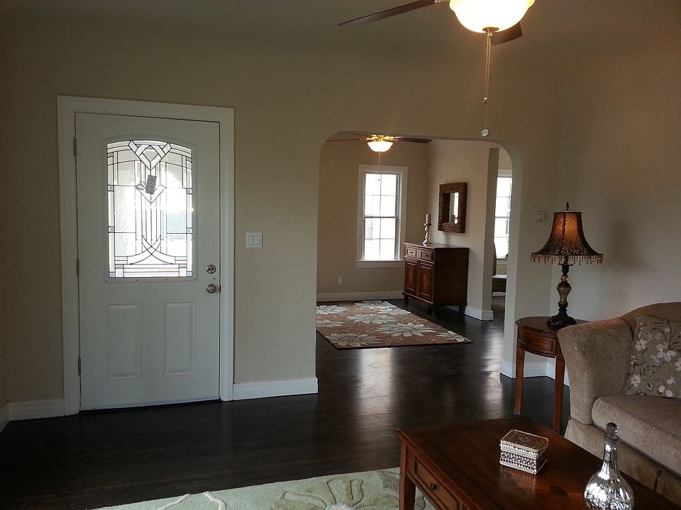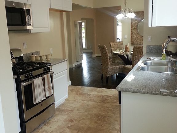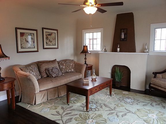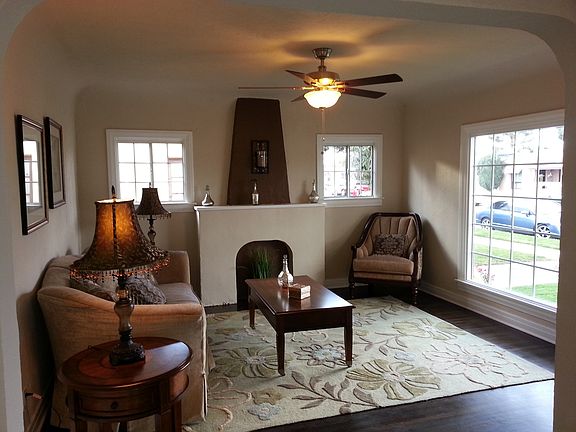 Charming Remodeled Spanish style home features a front porch 2 bedrooms 1 1/2 bathrooms. Refinished hardwood flooring throughout with travertine tile in the kitchen and bathrooms. New kitchen white cabinets, granite countertops, stainless steel stove, microwave, and dishwasher. Living room with separate dining area and formal dining or sitting area. A fenced backyard and work shop with washer dryer hook ups. Parking galore on the side and back of the house.