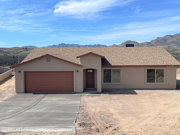 VIEWS, VIEWS, and VIEWS! New Construction-MOVE-IN READY! This beautiful 3 bedroom, 2 bath home has an open floor plan filled with natural lighting throughout. Just off the kitchen, the open area of the living room & dining room provides plenty of space for the entire family to spread out comfortably. The home faces east/west with exceptional views of the surrounding mountains. The kitchen includes custom cabinetry, granite countertops, an island, & SS appliances. Fine upgrades can be appreciated throughout the home such as spacious bedrooms, tile floors throughout, ceramic tile in shower wall surroundings, vaulted ceilings, upgraded light, & plumbing fixtures. This beautiful home is minutes away from the interstate for easy traveling to Nogales/Rio Rico or Tucson.