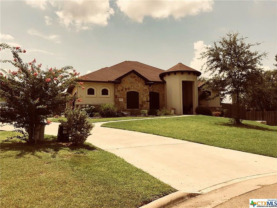 A stylish residence nestled in a desirable cul-de-sac. Unbeatable location close to schools, shopping, and theaters. This is a one owner home in an established neighborhood. The kitchen, with soft close cabinets, opens to a large great room with soaring ceilings and an electric fireplace. The master bedroom is privately located so you can escape to your own retreat complete with a separate walk-in shower, a free standing tub, and a generous walk-in closet. There are three additional bedrooms one of which could be used as an office or study. The back has a large covered porch, a large fenced grassy area, and immaculate landscaping. Other features include low-e windows, spray foam insulation, wide doorways, side entry garage, and a sprinkler system.