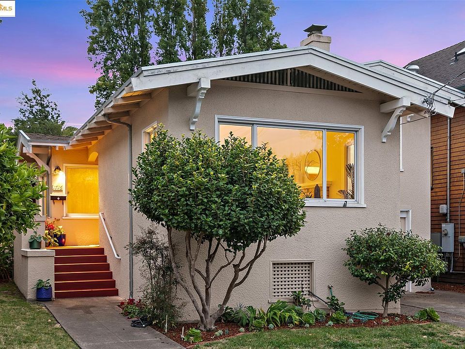 Built in 1924 and lovingly cared for by one family for 7 decades, this traditional home sits on a sunny lot lined with birds of paradise, orchids, and fruit trees—including apricot, apple, and persimmon. A private entry opens to a warm living and dining area, accented by a paneled wall. The functional kitchen, ready for your creative updates, features large sliding doors that open to the expansive backyard, perfect for outdoor dining and gardening. A unique hallway with a clerestory window separates the public and private spaces, leading to two bedrooms and a full bath. Downstairs, “Betsy’s Room” offers a flexible bonus space with a half bath, closet, and direct yard access—an ideal office, guest room, or creative studio. A single-car garage and driveway provide convenient parking for two. Nestled on a quiet street of rolling hills, this home is a short 7-minute walk to North Berkeley BART, the shops and restaurants of North Shattuck, and the evolving University Avenue district anchored by Trader Joe’s. One mile from Solano Avenue, you’re perfectly positioned for neighborhood events like the annual Solano Stroll—park here and enjoy the walk! This well-loved home blends quiet living with vibrant urban access, offering a rare opportunity to create your Berkeley dream.