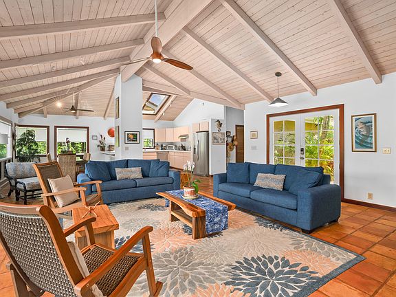 Great location on the Green Belt of Poipu Kai Resort, with an easy walk to both Brennecke's and Poipu beaches as well as the Grand Hyatt Resort. Single story, 4 bedroom, 2.5 bath self-contained home with photovoltaic electric and solar hot water, as well as air conditioning and Mexican tile flooring with area rugs. Fully furnished with everything that a vacationer would want. Large 2 car garage with lots of storage for both the owners and guests. Quiet, private and on a cul-de-sac street, yet close to all that Poipu and Koloa have to offer.