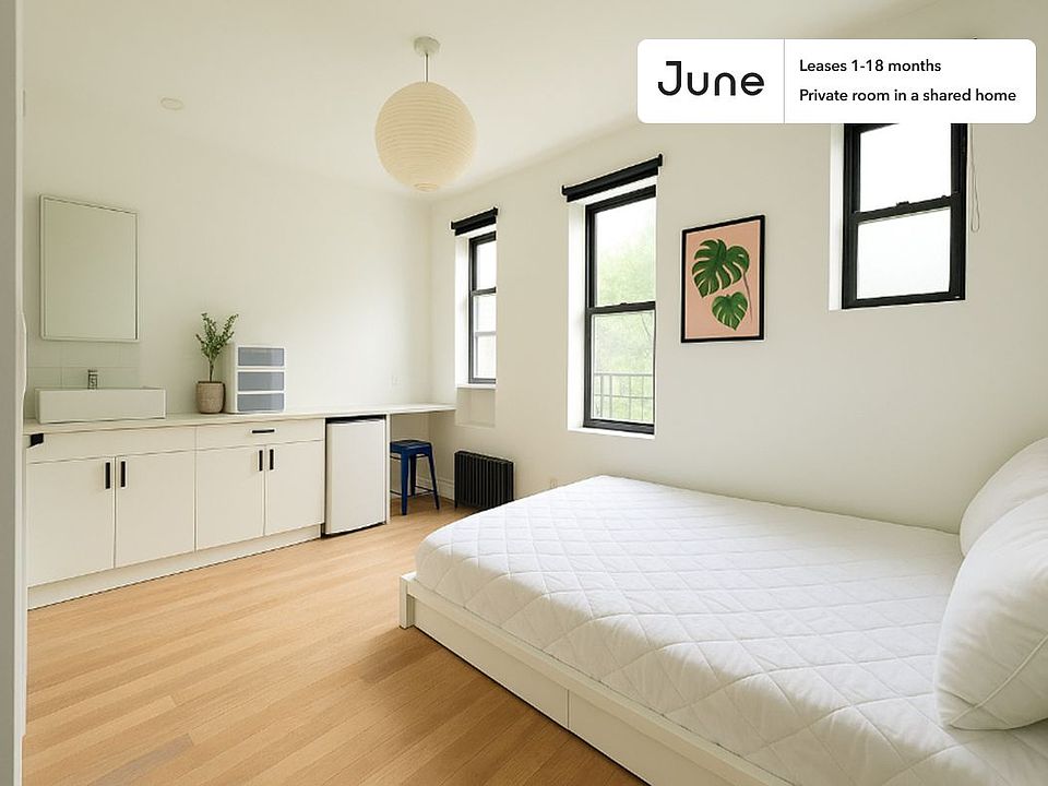 This Queen room in Ridgewood is available on a 12 month lease or a flexible short term (31 to 364 days) lease. You pick your custom start and end date. Monthly rent rate is determined by furnishing preference, move-in date and move-out date. Speak to a June representative for recommendations on the best stay duration for the lowest rate.