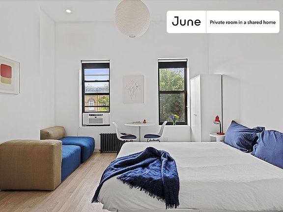 This Queen room in Ridgewood is available on a 12 month lease or a flexible short term (31 to 364 days) lease. You pick your custom start and end date. Monthly rent rate is determined by furnishing preference, move-in date and move-out date. Speak to a June representative for recommendations on the best stay duration for the lowest rate.