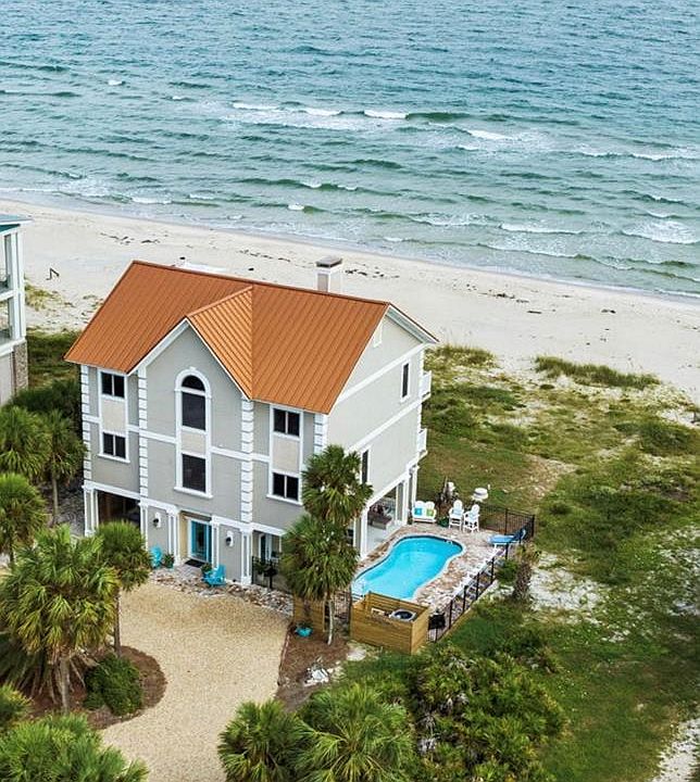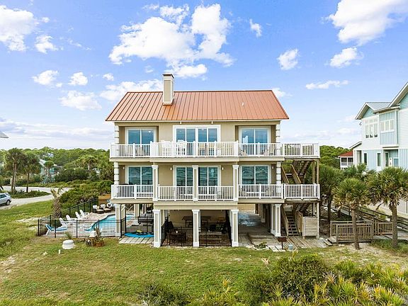"Beachfront Betty" has been completely remodeled from the top down, including a brand-new beachfront pool! Here you can watch the waves, soak up the sun, and relax under the spacious covered lounging pool patio, covered deck, or open deck which is perfect for star gazing! Sitting proudly on a premium lot with 100 ft of breath taking sugar sand beach. This is a stunning 5 bedroom 5 and a half bath beachfront home! This gorgeous home was completely remodeled with luxury details in mind. All new fixtures, new designer bathrooms, new hardwood floors, roof (2019), AC (2019 and 2023), new electric box (2023), new upgraded septic (2022), new plumbing, new furniture, new custom kitchen with quartz countertops, new appliances, 2 full size refrigerators and beverage cooler, new paint, and so much more! Home is nestled at the end of the street that provides extra privacy and larger lot. This property is a top performer in vacation rental income, providing a potential lucrative source of revenue for investors. All 2023 through Feb rental bookings must be honored, making it a great potential investment opportunity for those looking to maximize their income potential. Gated community with 24-hour security, clubhouse, 2 community pools, bicycle paths, fitness room, tennis and pickleball courts. 3300' paved airstrip. NOTE: New buyer fee of .50% of purchase price to SGPOA at closing.