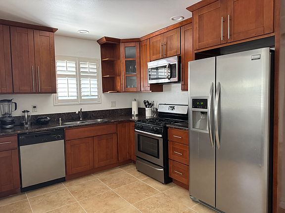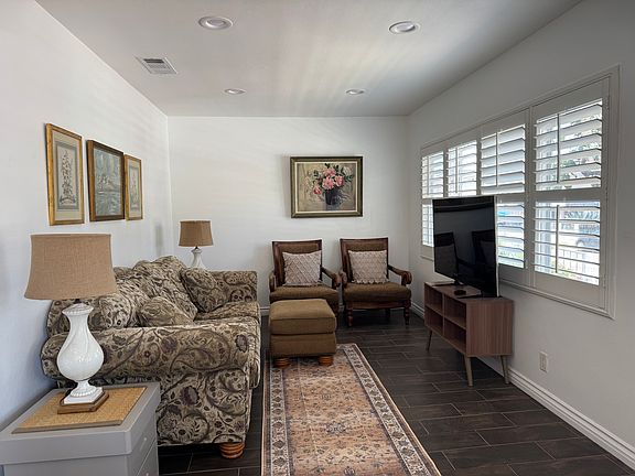 The home can be rented furnished, semi-furnished or unfurnished. Furniture may be rearranged or removed as needed. Amenities include an EV charging station, stainless steel appliances, central air conditioning and heating (recently replaced), security cameras, a washer and dryer, plantation shutters throughout, and an irrigation system. Weekly gardener service is included in the rent.